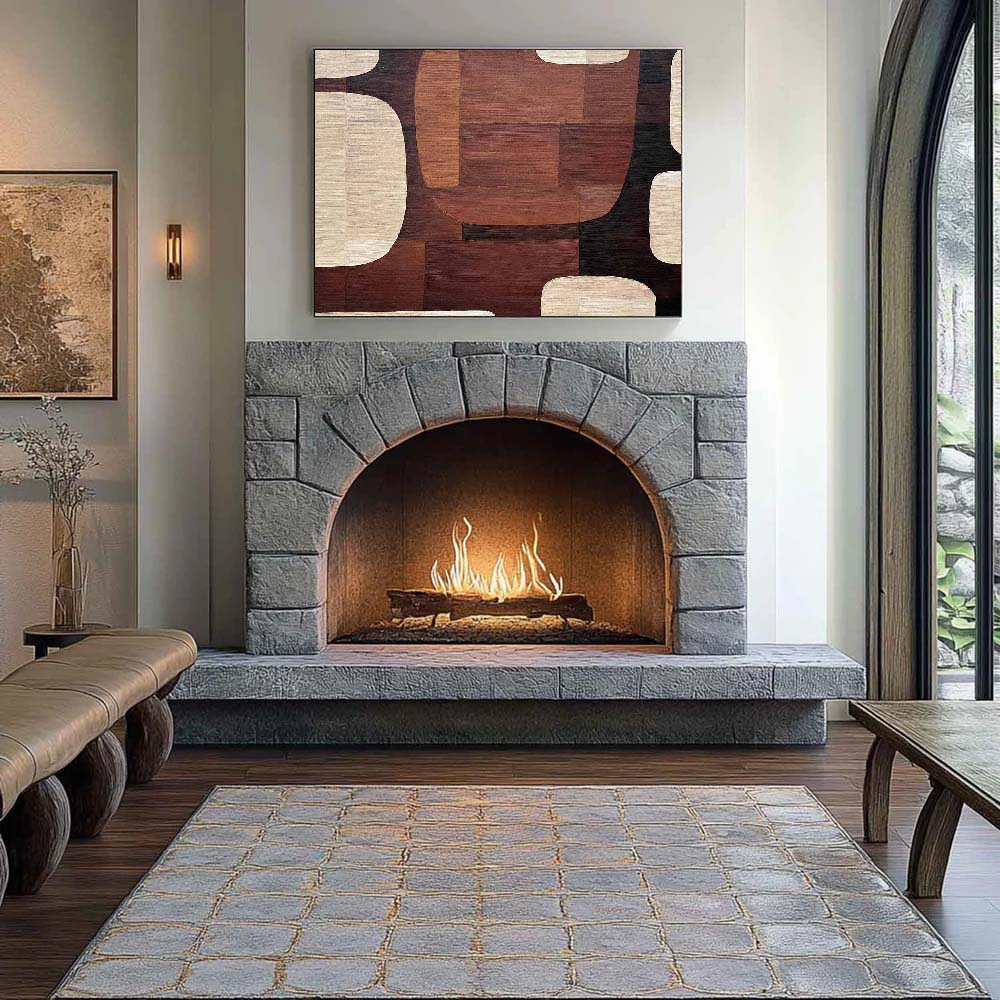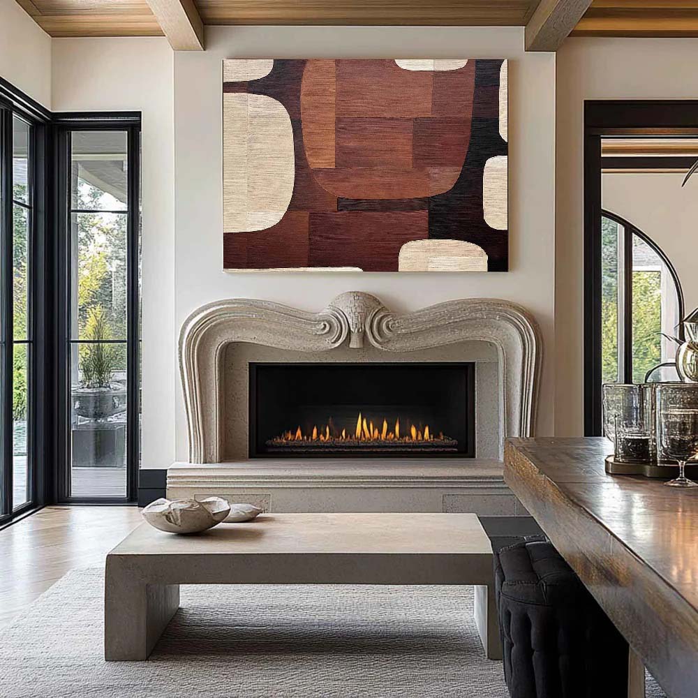 “Bordowe Kształty” – Ręcznie Malowane Obrazy na Płótnie do Powieszenia na Ścianę Dostępny Pionowy Poziomy Kwadrat